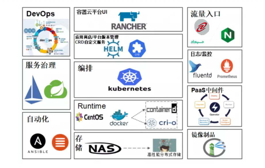 ?分層架構(gòu):以Kubernetes為核心組件的PaaS平臺(tái),整合EFK,Prometheus,Harbor等附加組件,PaaS服務(wù)分為三個(gè)平面,分別為管理平面、控制平面、計(jì)算平面。