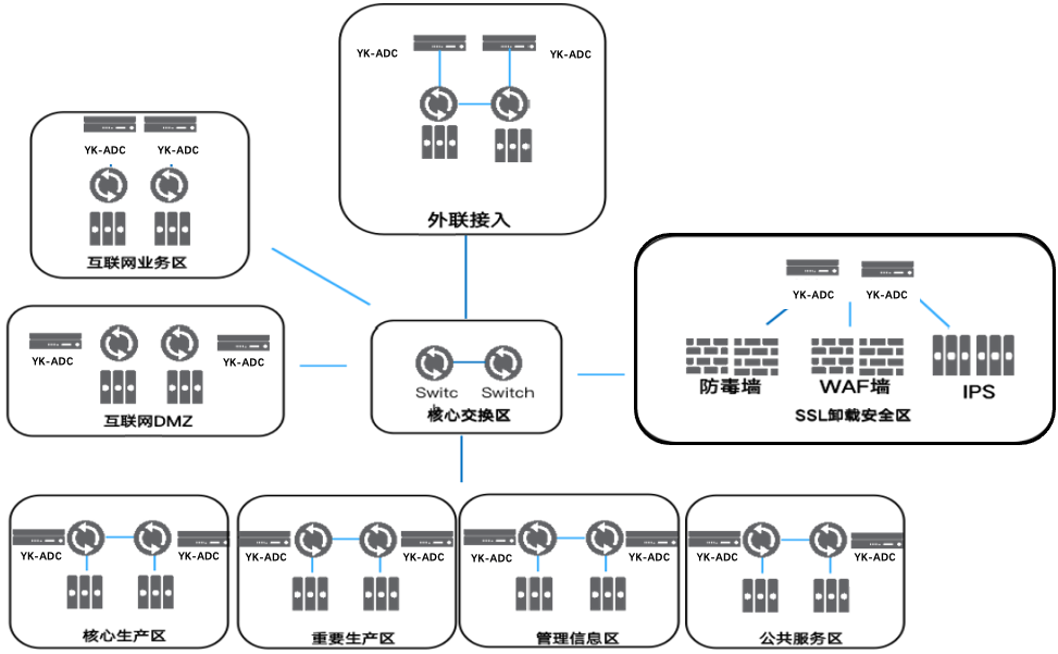 2、網(wǎng)銀接入LLB+GSLB結(jié)合,完美解決進(jìn)站出站流量多鏈路負(fù)載、雙中心智能調(diào)度,智能聚合多條運(yùn)營(yíng)商鏈路,整合雙中心應(yīng)用系統(tǒng)資源