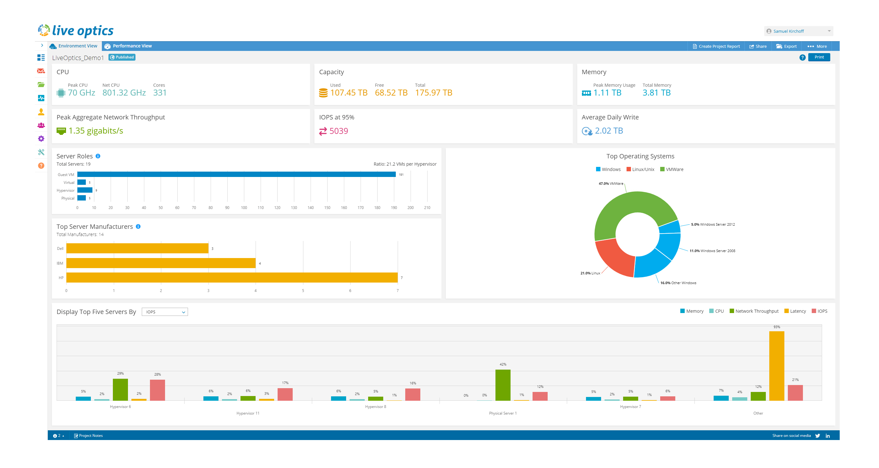 Live Optics 控制面板提供了您的 IT 環(huán)境及工作負(fù)載的清楚、準(zhǔn)確的視圖,讓您可以掌控一切。